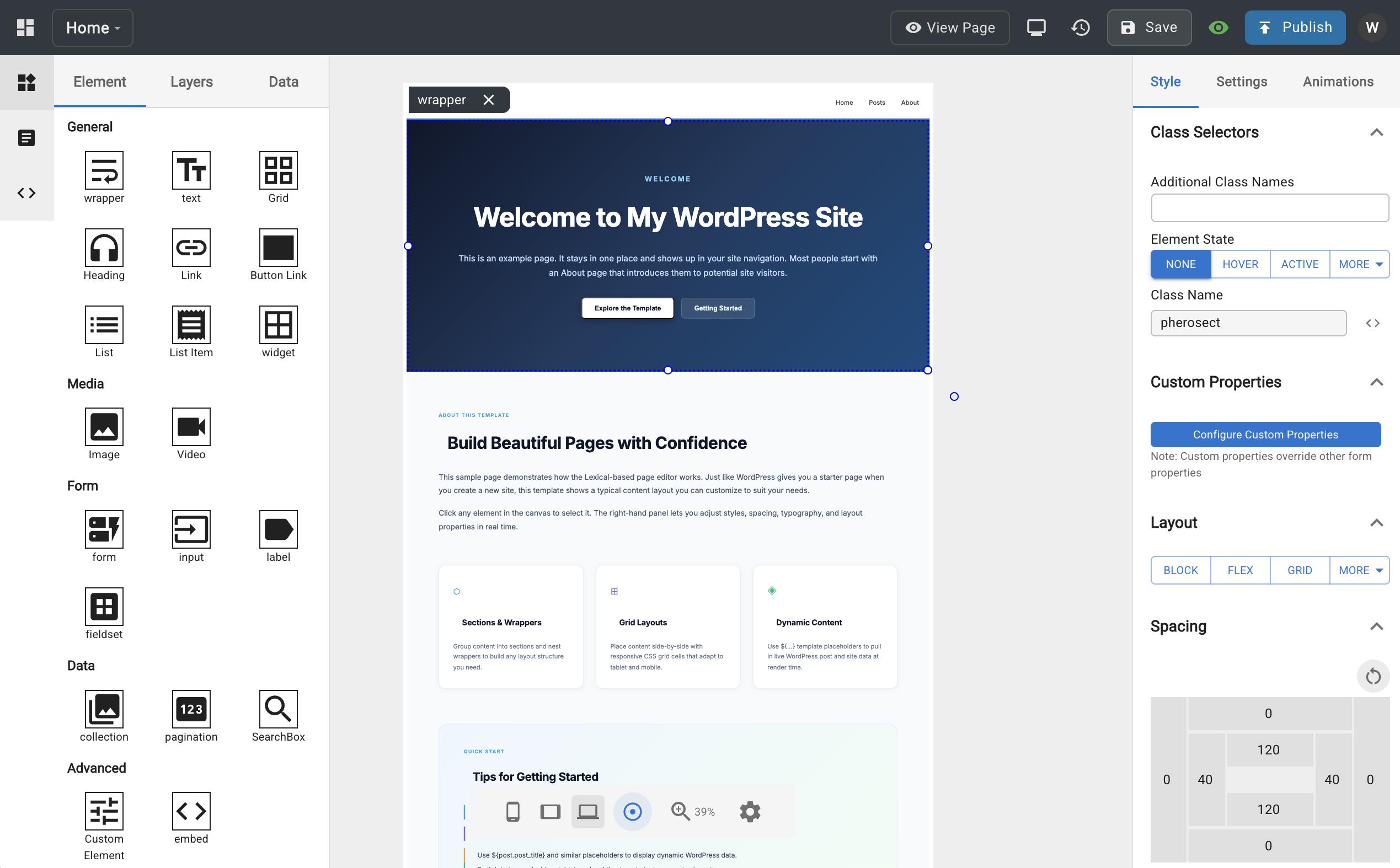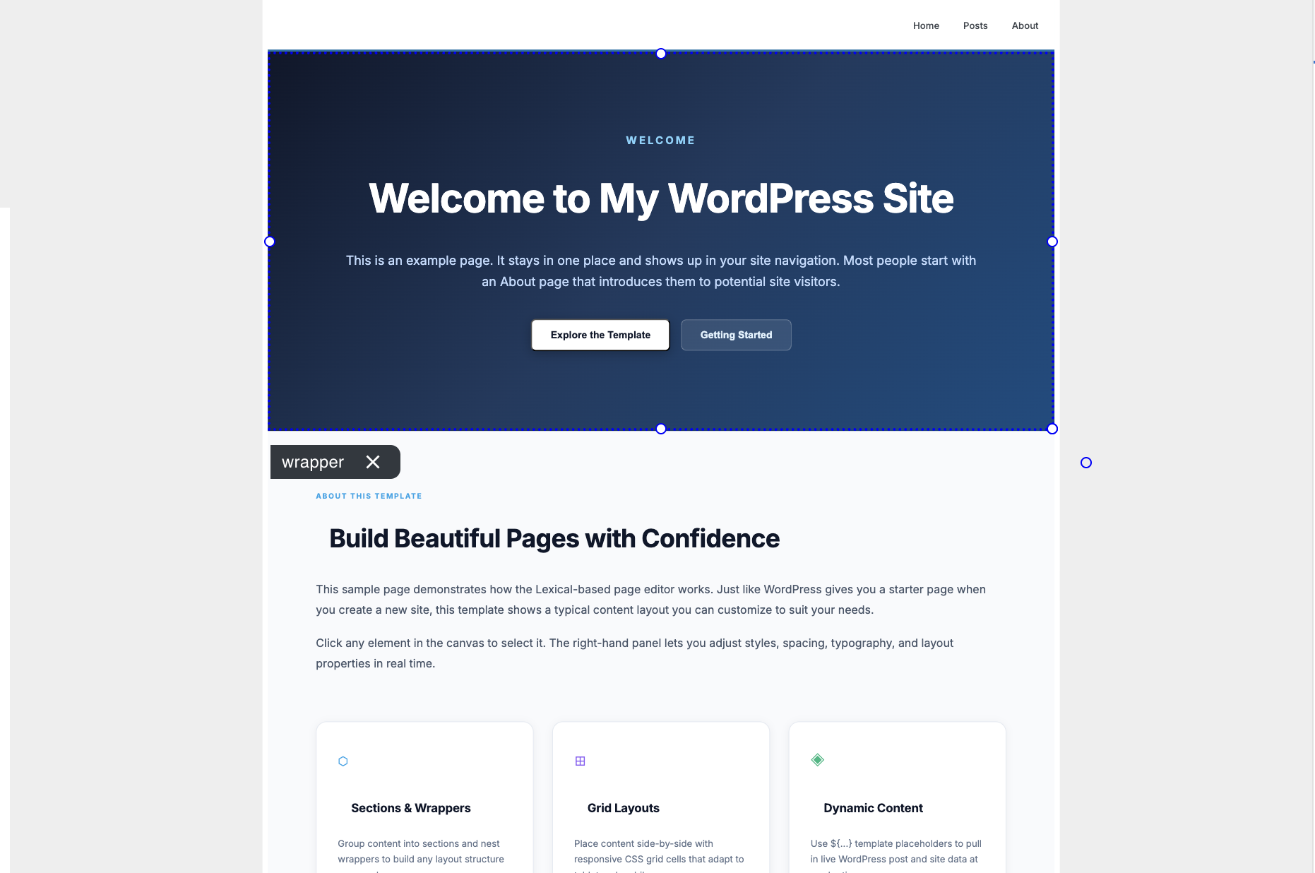 - Layers — a tree view of the Lexical node tree showing the current template's structure