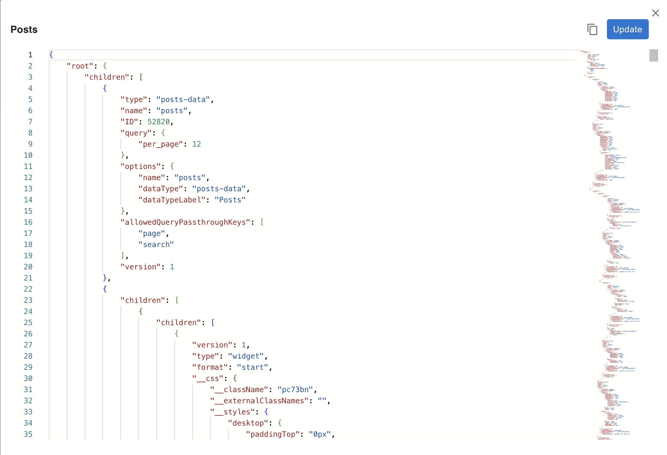 A code editor that lets you directly read and edit the raw Lexical JSON for the current template. See JSON Editor for details.