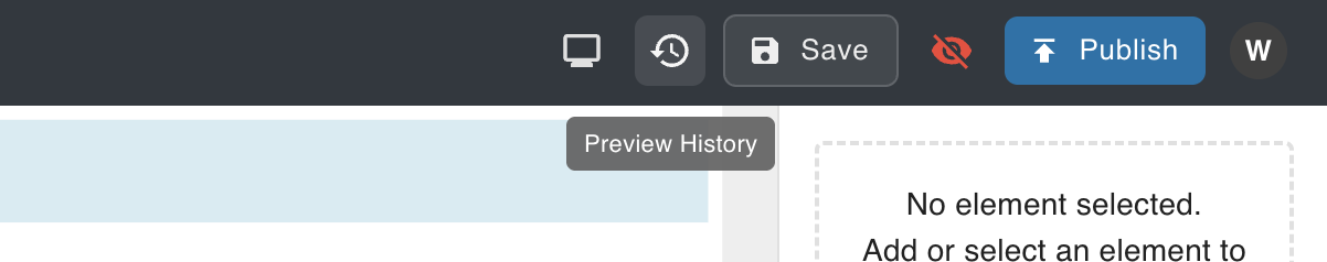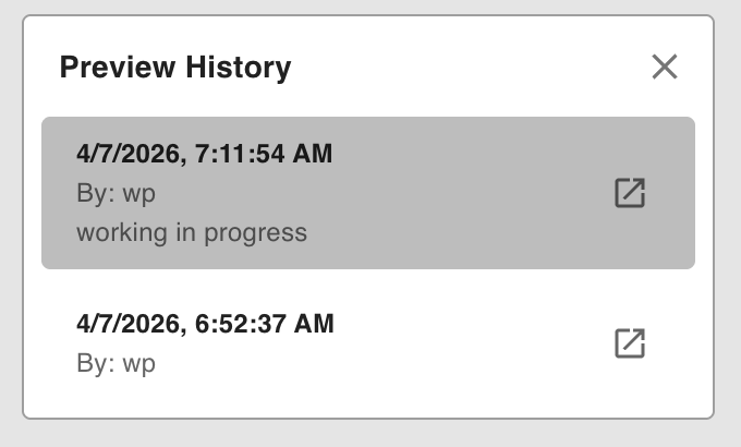 Opens a list of previous saves for the current template. You can switch to any saved version to preview or restore it.