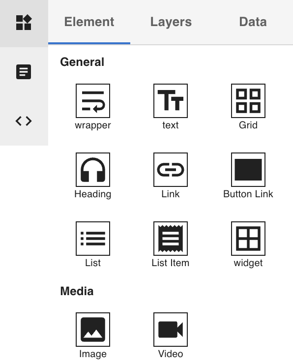 - Add elements — drag new elements from the Elements tab in the left nav onto the canvas