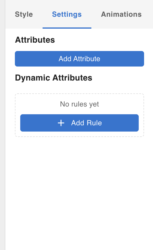 - Attributes — add arbitrary HTML attributes to the rendered element