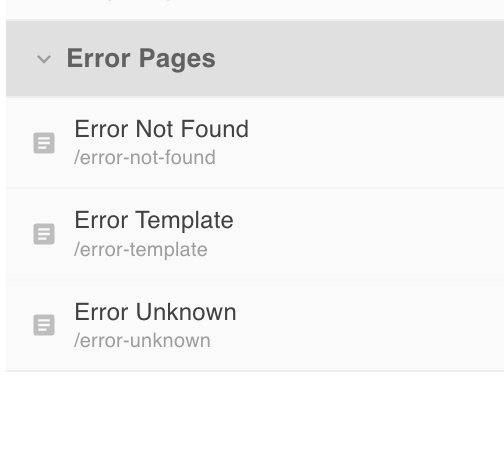Error page slugs are fixed — you cannot rename them after creation. If you need to replace an error page, delete it and create a new one with the same slug.