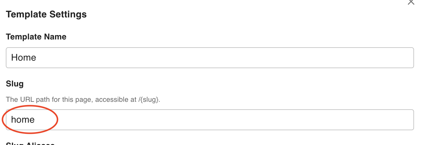 To set a template as the home page, open its Template Settings and set the slug to home.