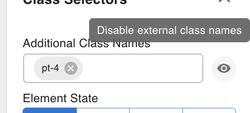 When to use: A node's Tailwind or custom CSS classes are making it hard to see how its base styles look — disabling them lets you inspect or adjust the node's built-in styles without deleting the class names.