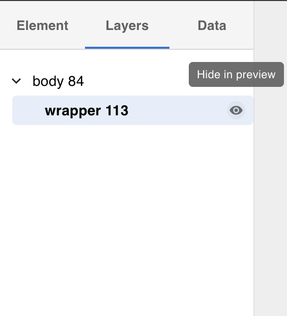 Location: Left Nav → Layers tab (Element tab) — hover over any node row to reveal the toggle.