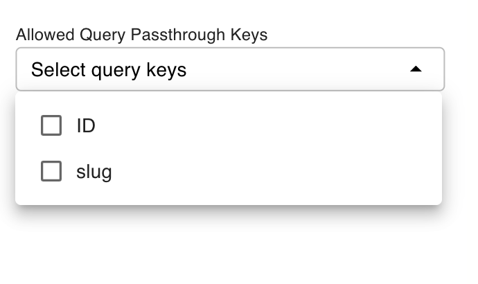 For example: if you are building a post detail page at /post/[slug] and want the slug key to be driven by the URL, check slug here. Keys that are not checked are always resolved by the fixed value set in Step 2 and cannot be overridden by URL parameters.