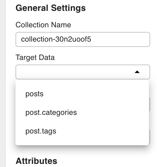 Some sub-arrays within a result (e.g. posts.categories) are also automatically detected and can be selected as a target.