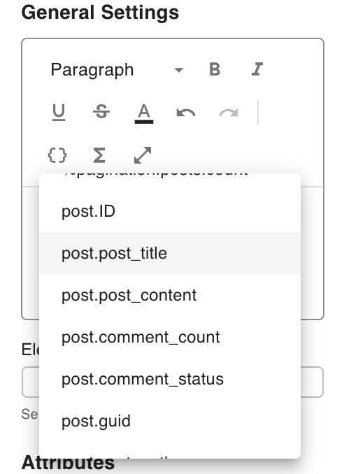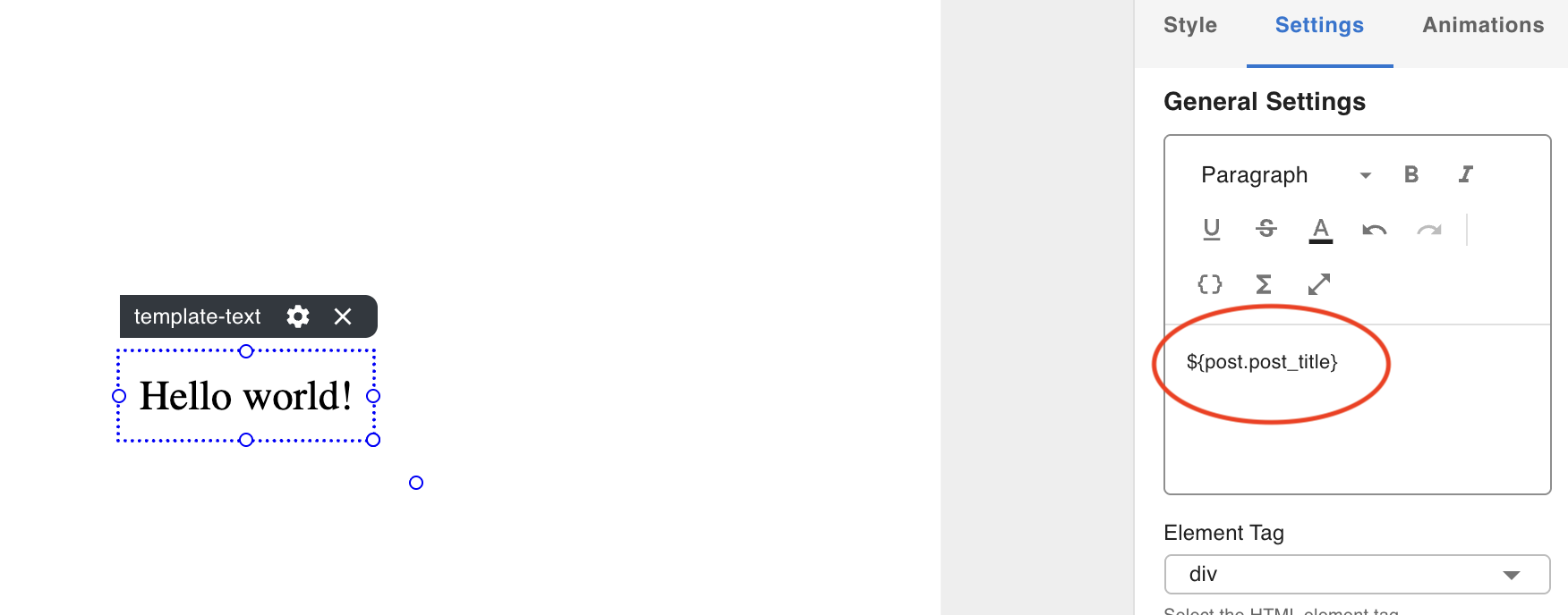Dynamic data connects template elements to live WordPress database content — posts, pages, users, taxonomies, options, and more. Instead of hardcoding text and values, you define what data to fetch, then bind specific fields to elements so the page renders with real content at request time.