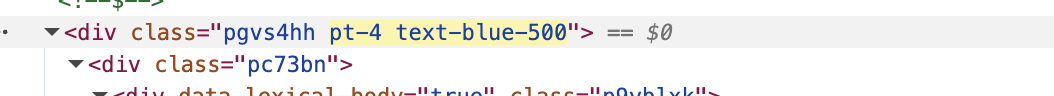 When a node or element is created, a unique class name is automatically assigned (e.g. pc73bn). This class name is internal and cannot be changed — it is used to target the element for style injection and DOM manipulation.