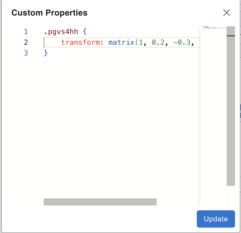 For CSS values that cannot be entered through the standard controls — such as calc() expressions, clamp(), or other CSS functions — use Custom Properties to enter raw property/value pairs.