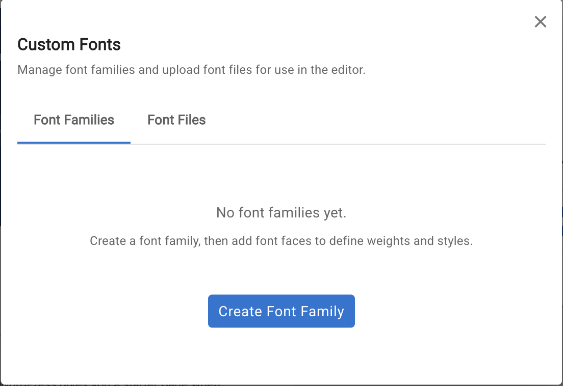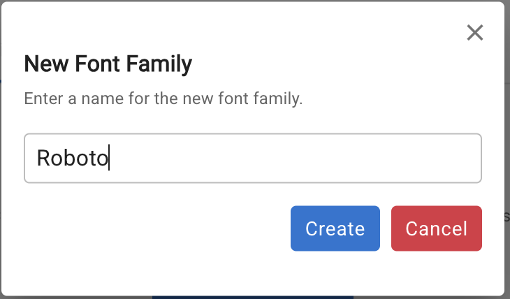 Click Create Font Family and enter the font name (this becomes the font-family CSS value).