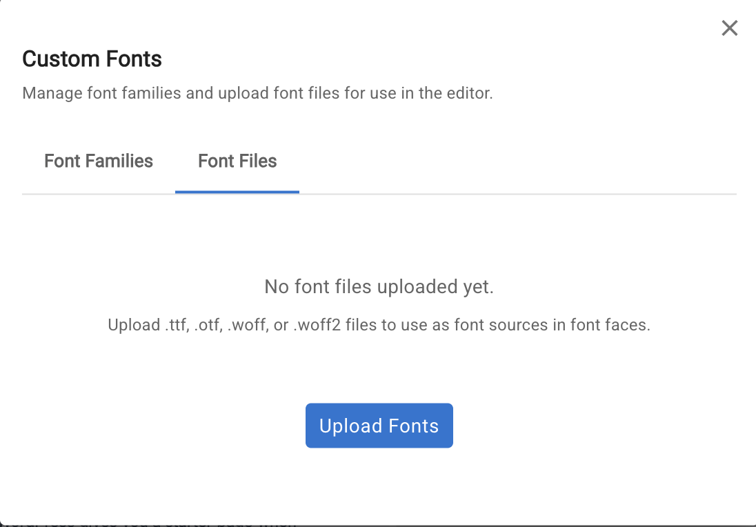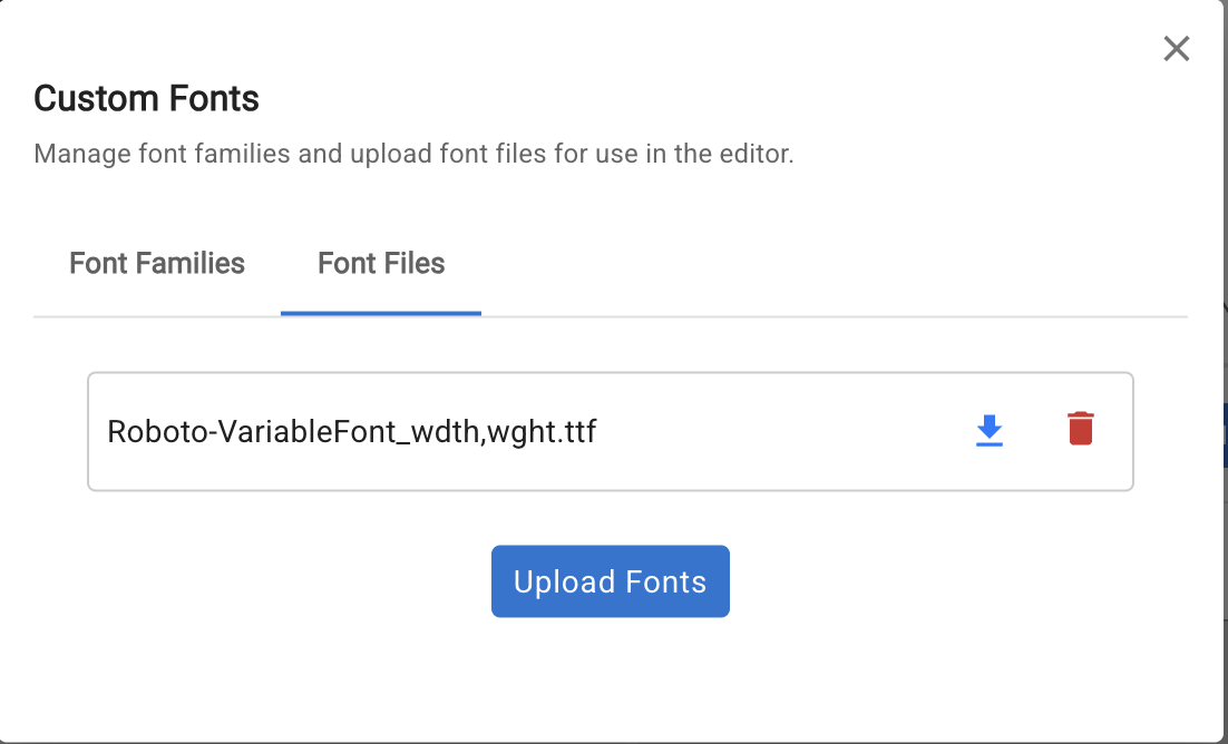 Switch to the Font File tab and click Upload Fonts to upload your font files.