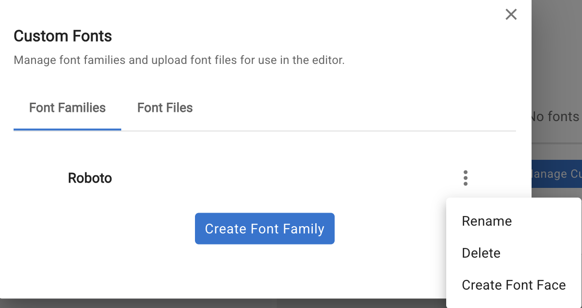 Click Manage Custom Font to open the manager.