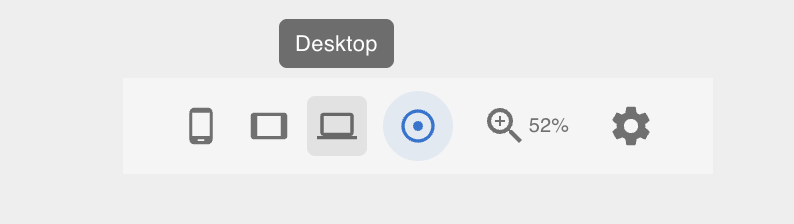 Three breakpoints are supported: Desktop, Tablet, and Mobile. Switch between them using the Footer Toolbar at the bottom of the canvas.