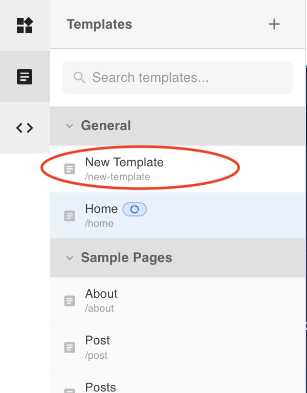 - Template name — displayed in the editor left nav for organization purposes; this does not affect the URL.