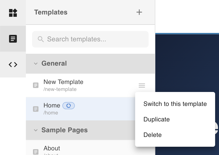 Click the menu icon on the template item and select Switch to this template to open it in the canvas.